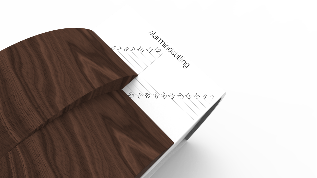 Setting the alarm is simple interaction with two sliders. The first (top) shows the hour, where the second shows minutes in 5 minutes’ intervals. Once both have been set, the alarm will ring at the chosen time. The alarm is deactivated by pushing both sliders forward, back to the original position.