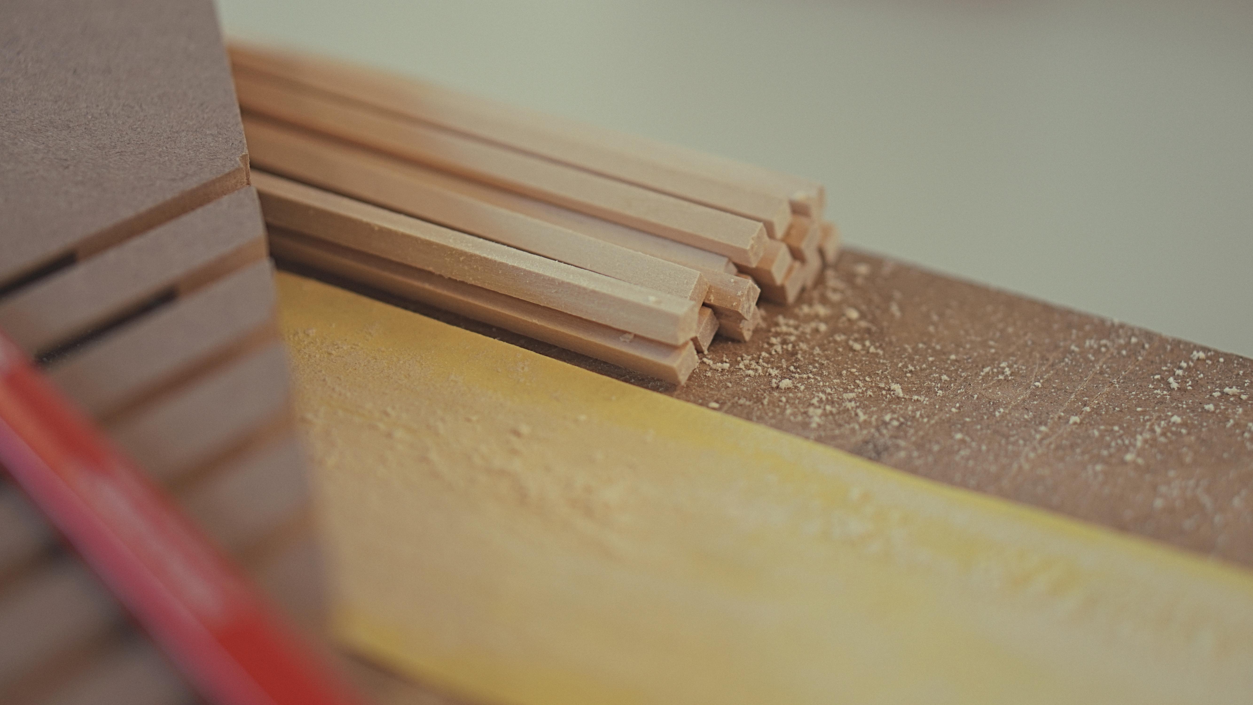 The slats are manufactured by hand. This is done to keep a strong focus on the craftsmanship creating a story to the final product. It also adds value to the customer by knowing the experience required to create the product. Finally, the clock work is glued into the base, the slats are mounted and the clock arms are attached to the clock work finishing the assembly process.