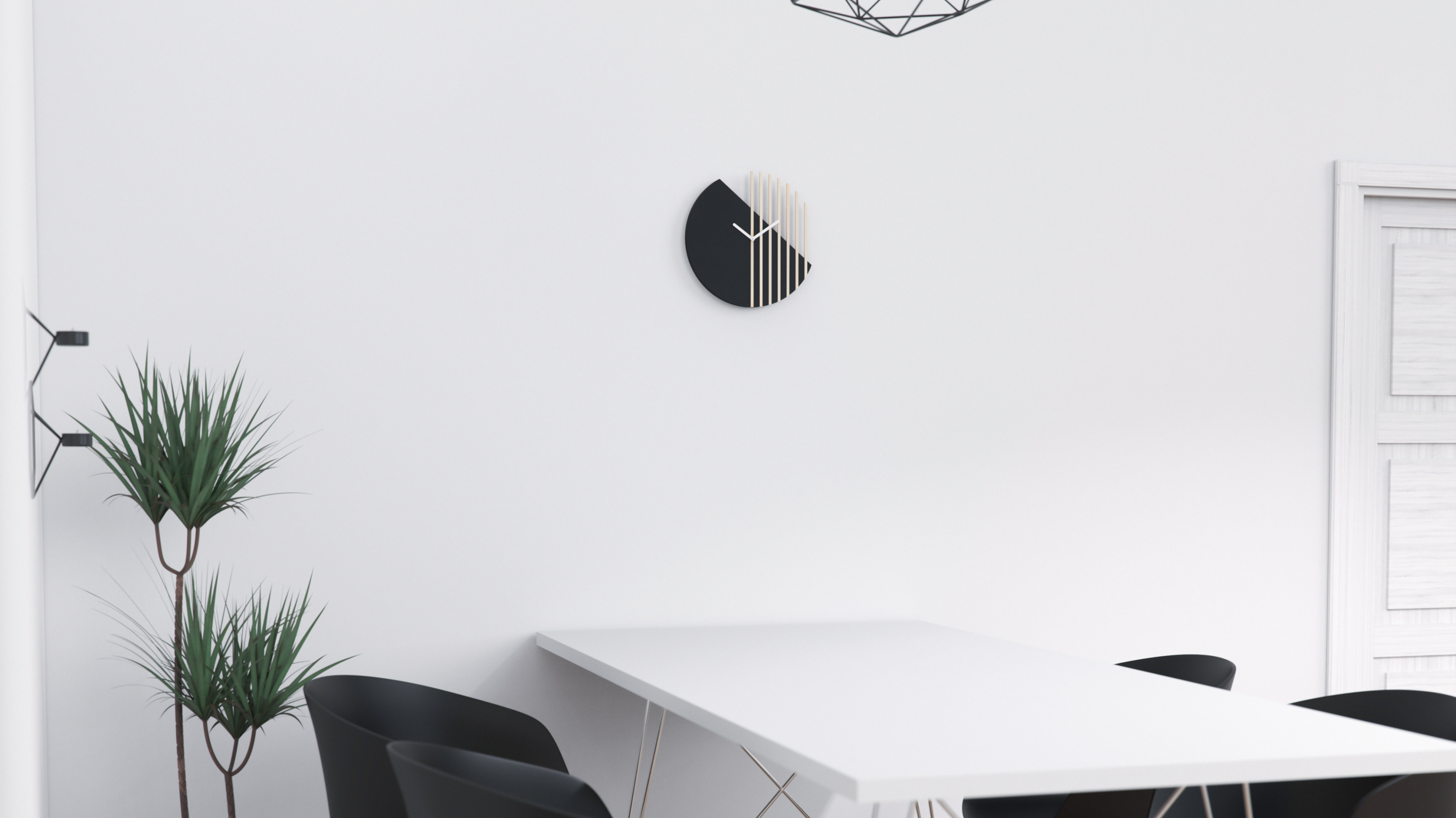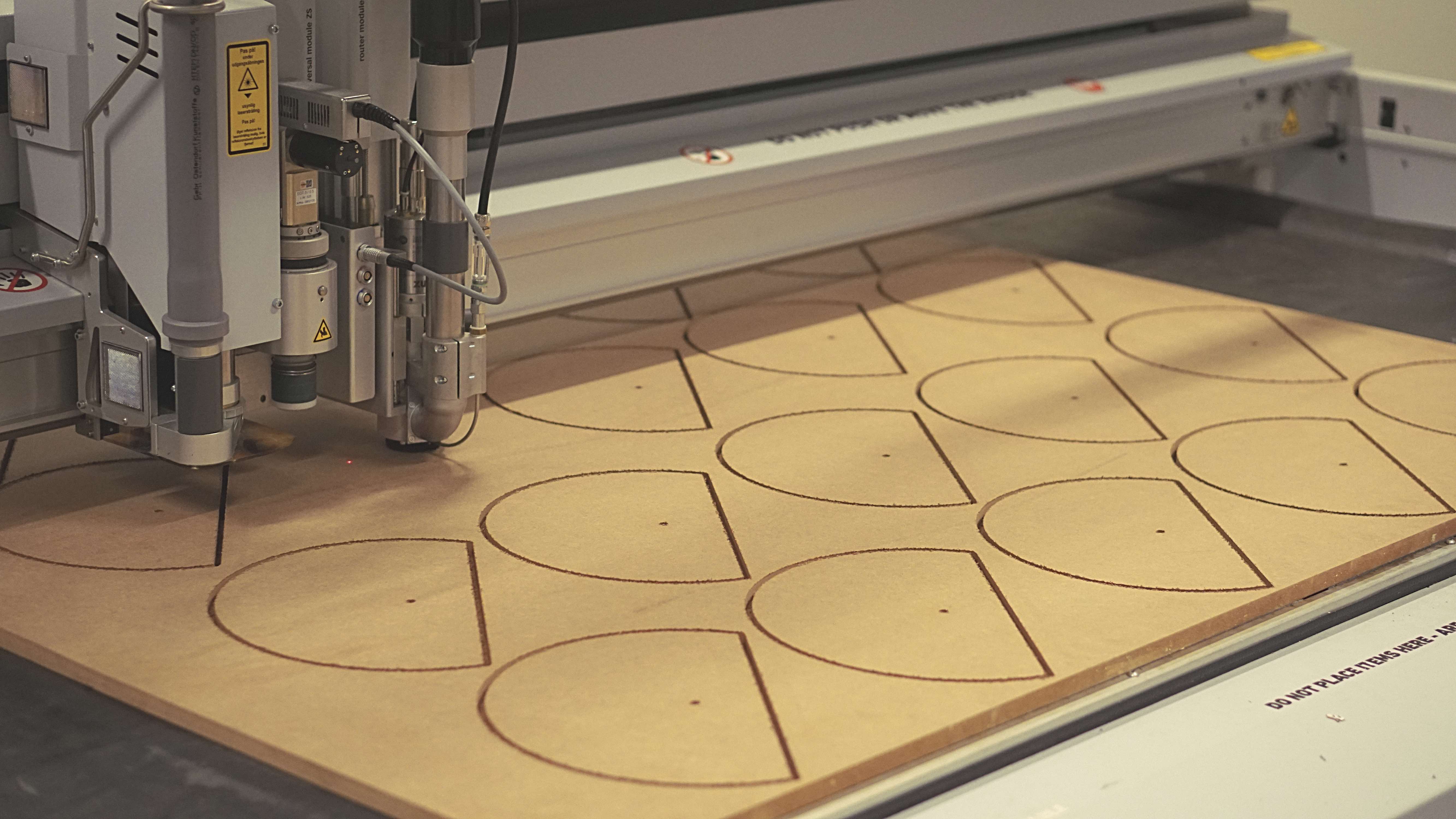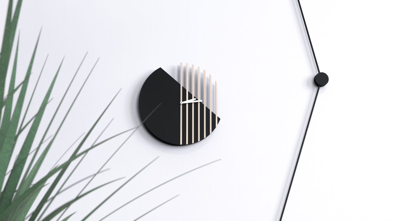 The clock consists of four elements; a base, seven slats, the clock work and the clock hands. The manufacturing process starts by cutting the base with a CNC machine to achieve a high and uniform precision. A protective prime layer followed by a spray painting job completes the process of the base.